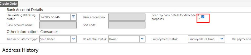 • Scroll down and untick the box labelled “ Keep my bank details for direct debit purposes”