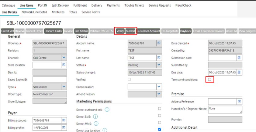 once on line items page tick the terms and conditions box, verify and then ok on the box that will pop up, then submit