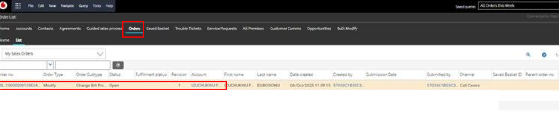 7. By selecting the “Orders” tab on the top black bar of halo you can see the progress of the merge, keep checking until the order states “Complete”, once that happens you can proceed as normal with your order.