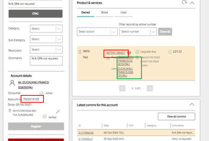 1: note the account number down (this one ends 103 for example) then click the PAYM mobile number
